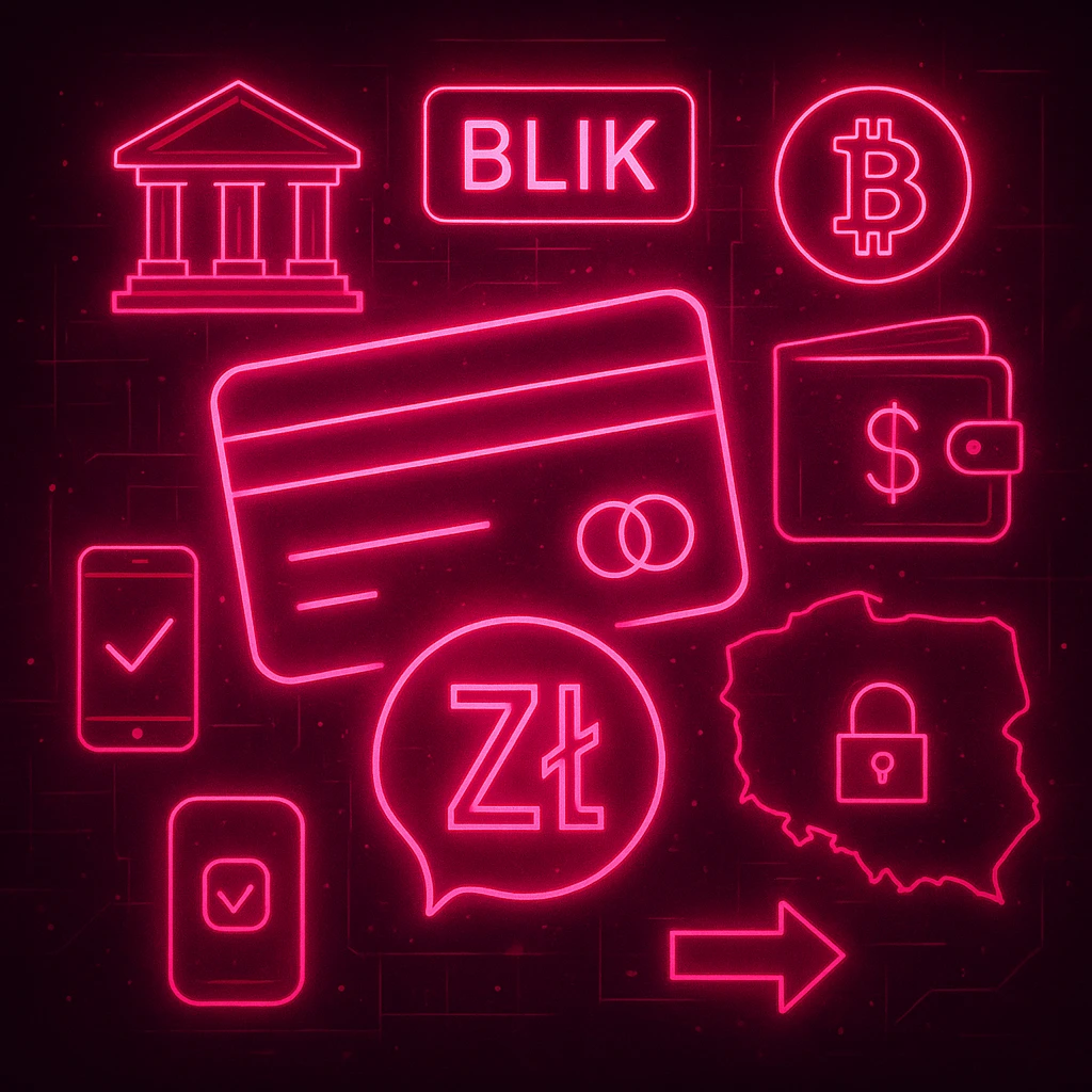 Platforma oferuje kompleksowy system płatności dostosowany do potrzeb polskich graczy. Dostępne są wszystkie popularne metody finansowe, od tradycyjnych przelewów bankowych i płatności kartą, przez nowoczesne rozwiązania jak Blik, aż po e-portfele i kryptowaluty. Wszystkie transakcje realizowane są w polskich złotówkach, co eliminuje konieczność przeliczania walut i dodatkowe koszty wymiany. System zabezpieczeń gwarantuje pełną ochronę danych finansowych podczas każdej transakcji. Wpłaty przetwarzane są zazwyczaj natychmiast, choć niektóre metody kartowe mogą wymagać do dwóch dni na pełne zaksięgowanie środków.